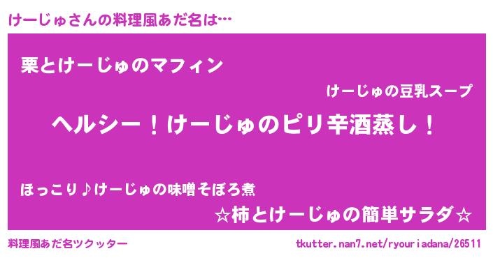 | 意味不明あだ名 | 『自称けーじゅ』『ペロリンけーじゅ』 |