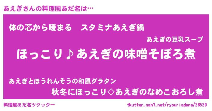 | ヘコむあだ名 | 『あえもー』『牛乳』『あえぷりん』 |