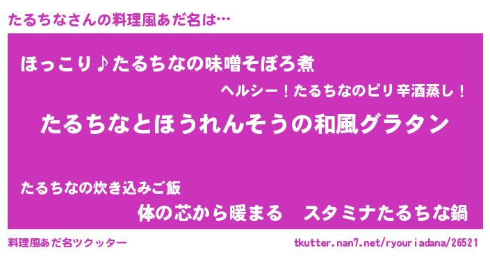| 意味不明あだ名 | 『もやし科たるちな属』『自称たるちな』 |