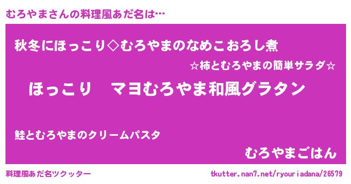 | 男性向けラノベタイトル風あだ名 | 『この素晴らしい世界にむろやまを!』 |