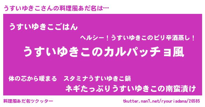 | 意味不明あだ名 | 『住所不定無職うすいゆきこ(62歳)』 |