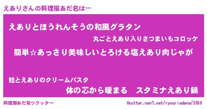| ヘコむあだ名 | 『えあり(笑)』『なまこ酢』 |