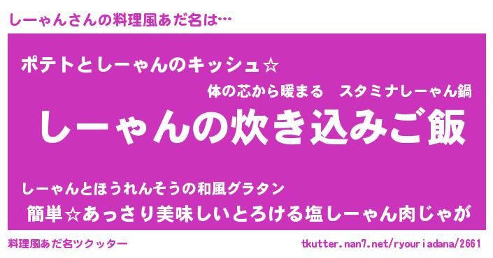 | 男性向けラノベタイトル風あだ名 | 『冴えないしーゃんの育てかた』 |
