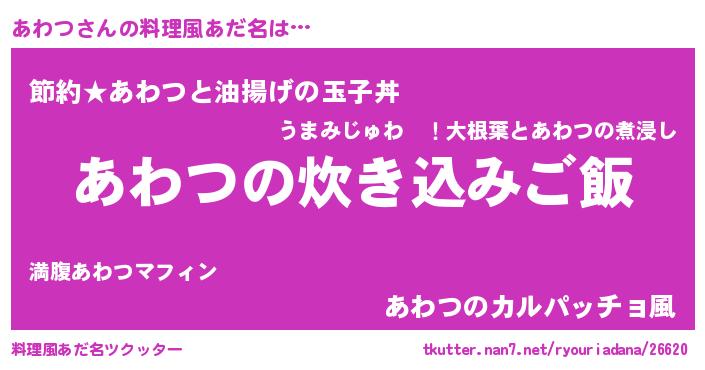 | 男性向けラノベタイトル風あだ名 | 『冴えないあわつの育てかた』 |