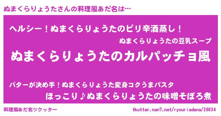 | 意味不明あだ名 | 『住所不定無職ぬまくらりょうた(14歳)』 |