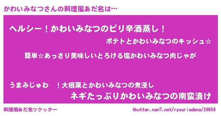 | ヘコむあだ名 | 『かわいみなつ(笑)』『かわっふぃ~』 |