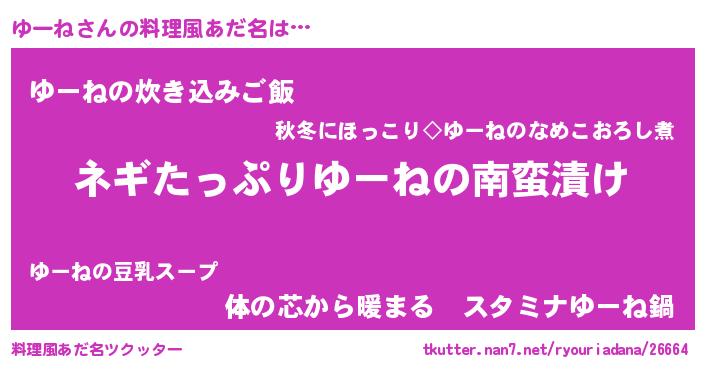 | ヘコむあだ名 | 『ゆーもー』『酢こんぶ』『ゆーを』 |