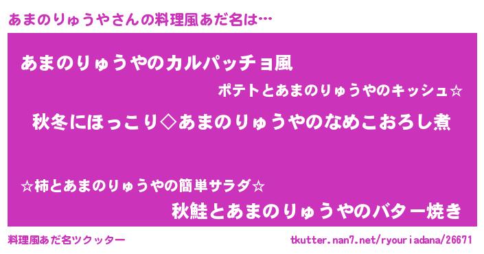 | ヘコむあだ名 | 『あまのりゅうや(爆)』『あまお』 |