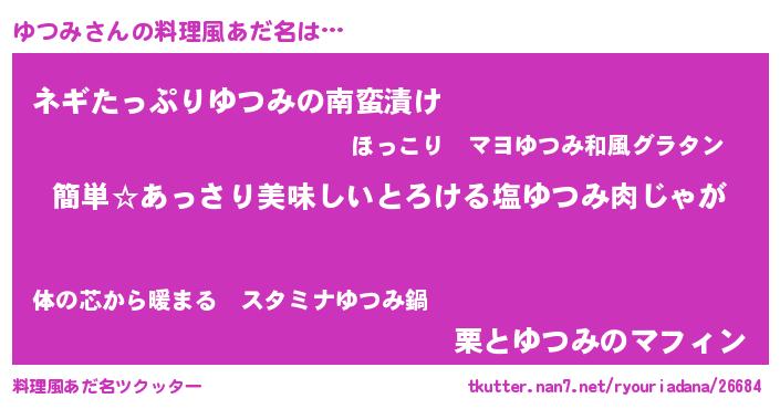| ヘコむあだ名 | 『ゆつみ(遠い目)』『ゆつっふぃ~』 |