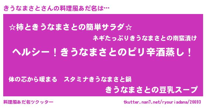 | 男性向けラノベタイトル風あだ名 | 『Re:きうなまさとから始める異世界生活』 |