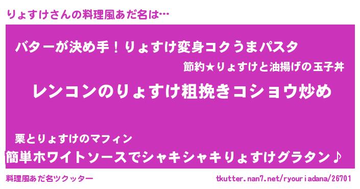 | 女子向けラノベタイトル風あだ名 | 『りょすけなんてお断りですっ。』 |