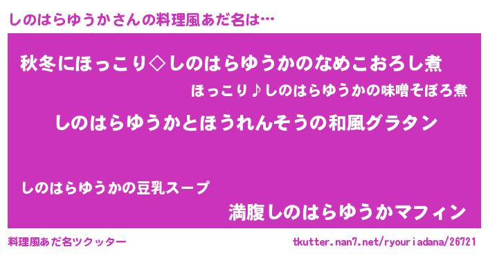 | ヘコむあだ名 | 『しのはらゆうか(笑)』『しのにー』 |