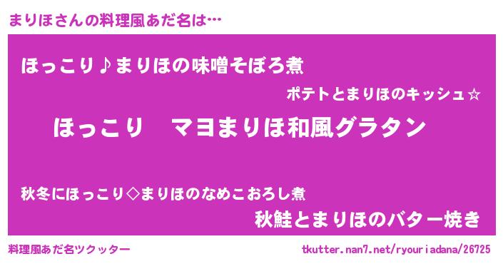 | 男性向けラノベタイトル風あだ名 | 『この素晴らしい世界にまりほを!』 |
