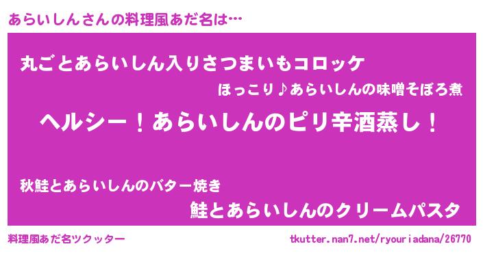 | 胡散臭い通販商品みたいなあだ名 | 『芸能人もオススメする高麗人参…その名も「あらいしん」』 |