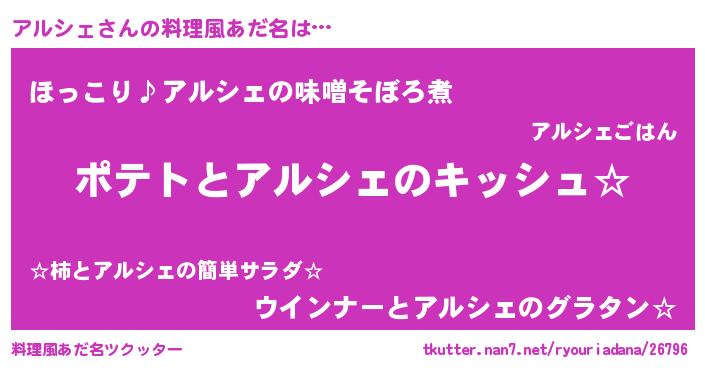 | 男性向けラノベタイトル風あだ名 | 『アルシェの嫁は女の子じゃないと思った?』 |