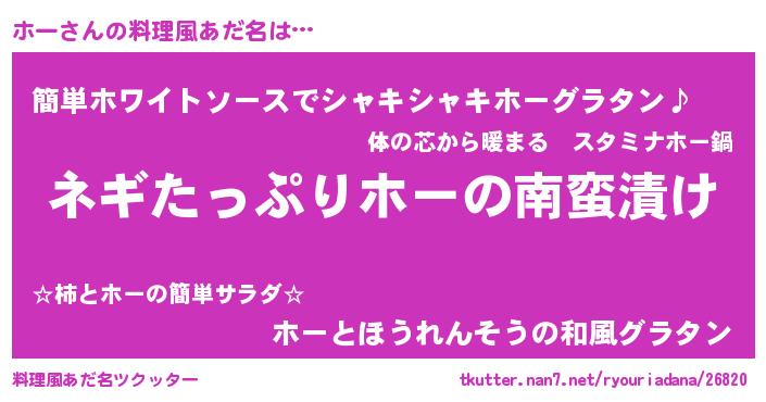 | ヘコむあだ名 | 『ホーもー』『ホーぷりん』 |