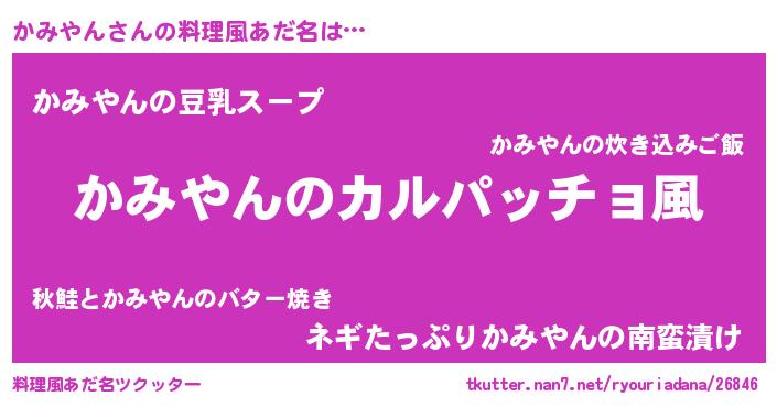 | 男性向けラノベタイトル風あだ名 | 『魔弾の王とかみやん』 |