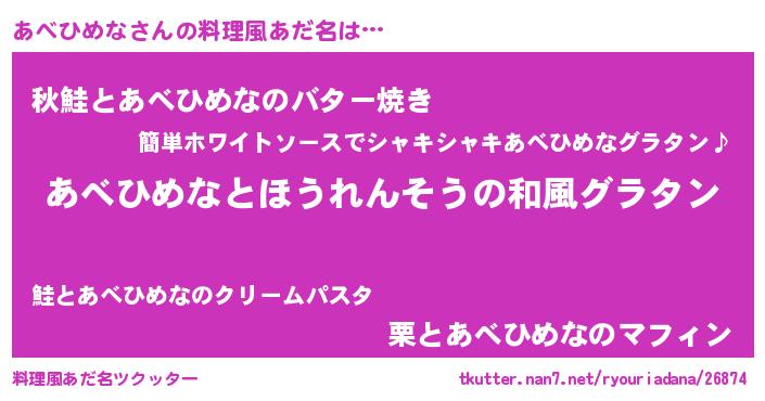 | ヘコむあだ名 | 『あべひめな(遠い目)』『あべお』 |