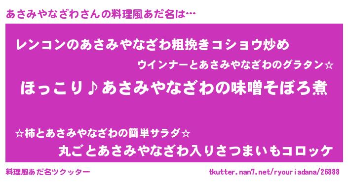 | 女子向けラノベタイトル風あだ名 | 『(仮)あさみやなざわのやんごとなき事情』 |
