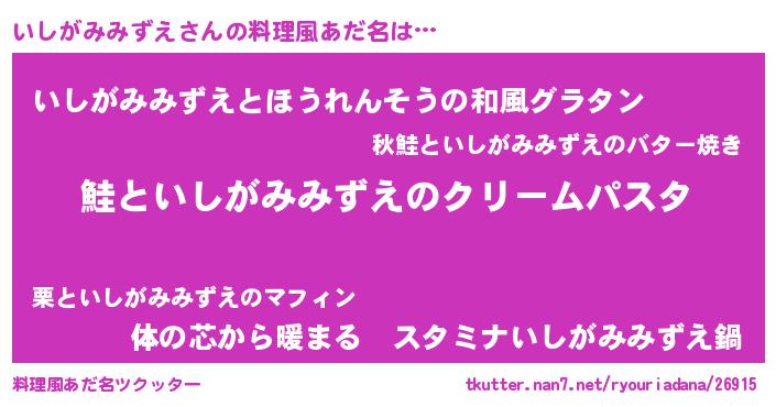 | ヘコむあだ名 | 『酢こんぶ』『いしがみみずえ(笑)』 |