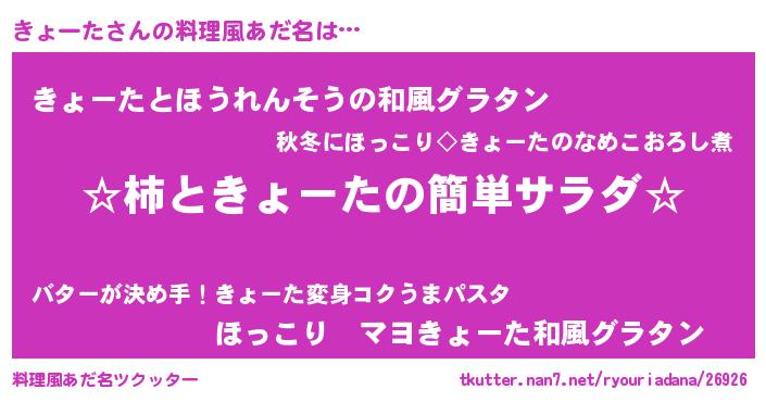 | ヒーロー風カッコイイあだ名 | 『仮面キョダー』『慈愛の使者きょーた』 |