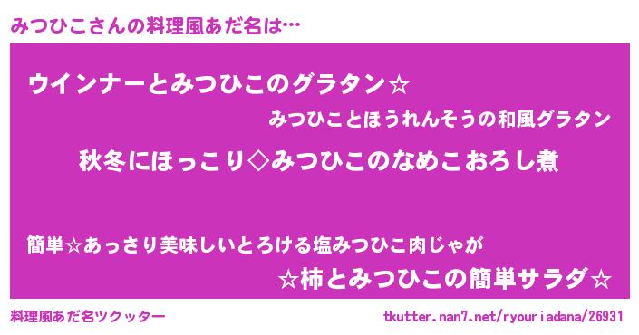 | 男性向けラノベタイトル風あだ名 | 『みつひこに滅ぼされるだけの簡単なお仕事です』 |