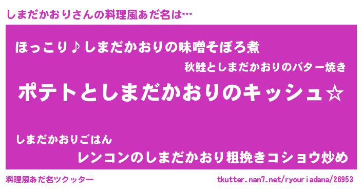 | ポケモン風あだ名 | 『ヒシマダカオリ』『シマチュウ』 |