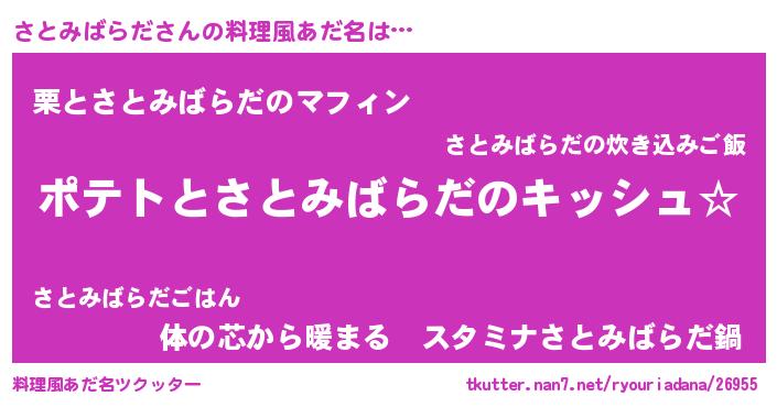 | 男性向けラノベタイトル風あだ名 | 『さとみばらだの嫁は女の子じゃないと思った?』 |
