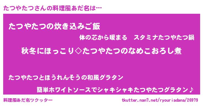 | 意味不明あだ名 | 『とにかく怪しいたつやたつ』 |