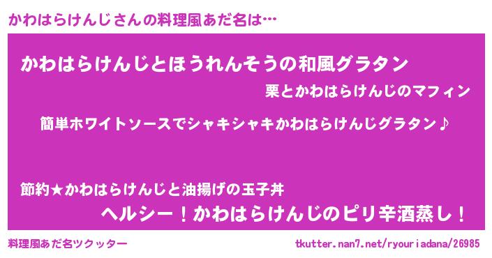 | 男性向けラノベタイトル風あだ名 | 『かわはらけんじの嫁は女の子じゃないと思った?』 |