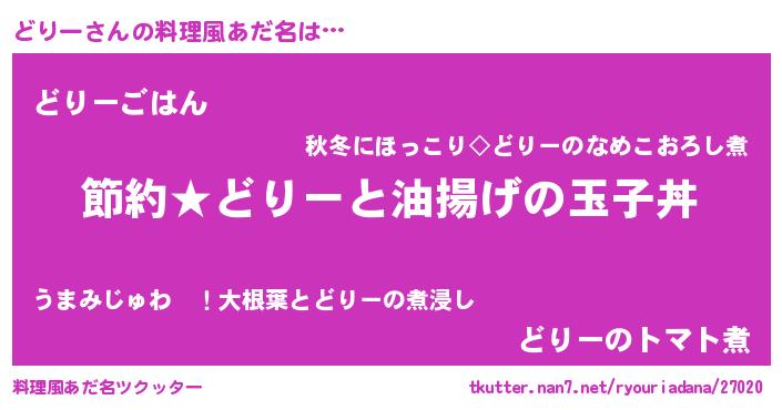 | 男性向けラノベタイトル風あだ名 | 『どりーの憂鬱』『ドリースレイヤー』 |
