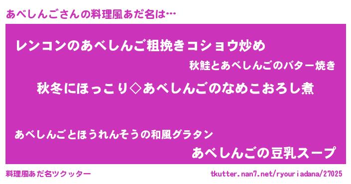 | 意味不明あだ名 | 『自称あべしんご』『永久保存あべしんご』 |