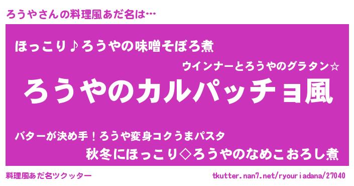 | 男性向けラノベタイトル風あだ名 | 『魔弾の王とろうや』『ろうやの憂鬱』 |
