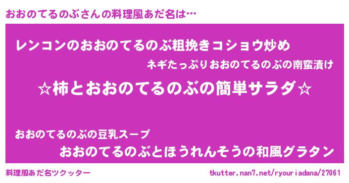 | 女子向けラノベタイトル風あだ名 | 『シンデレラおおのてるのぶ家の靴箱館』 |