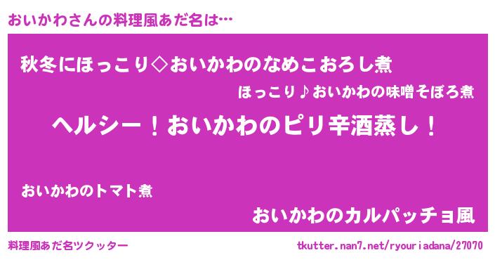 | 意味不明あだ名 | 『自称おいかわ』『ペロリンおいかわ』 |