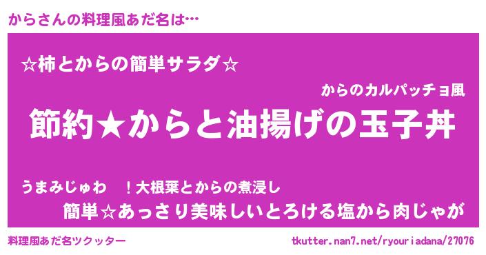 | ヘコむあだ名 | 『からにゅー』『から(爆)』『からを』 |