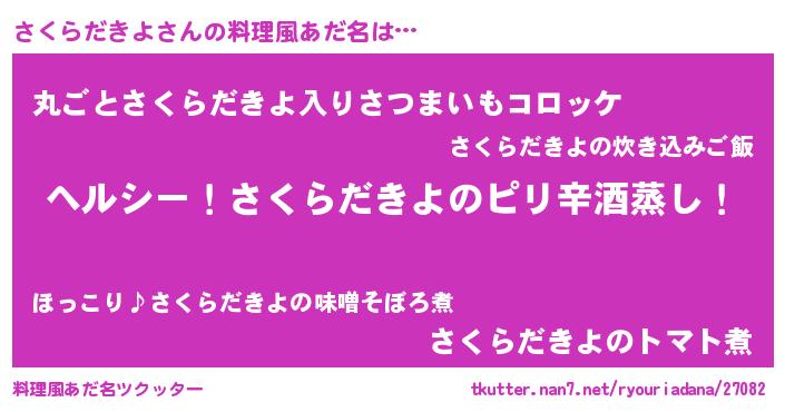 | 男性向けラノベタイトル風あだ名 | 『Re:さくらだきよから始める異世界生活』 |