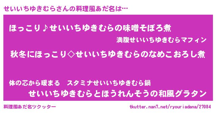 | 男性向けラノベタイトル風あだ名 | 『せいいちゆきむらに滅ぼされるだけの簡単なお仕事です』 |