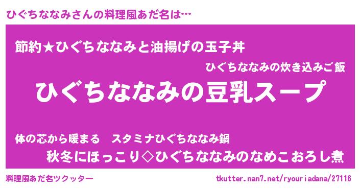| ポケモン風あだ名 | 『ヒヒグチナナミ』『ヒグチュウ』 |