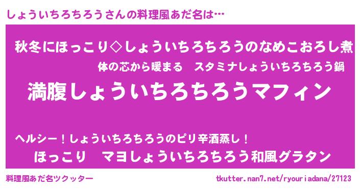 | 男性向けラノベタイトル風あだ名 | 『しょういちろちろうという概念が存在しない退屈な世界 』 |
