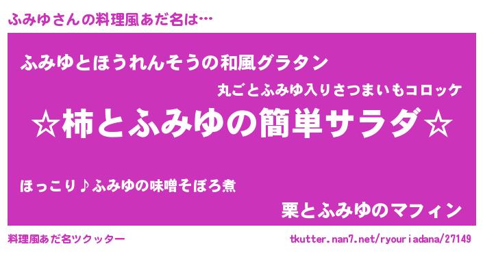 | 男性向けラノベタイトル風あだ名 | 『緋弾のフミユ』『はたらくふみゆさま!』 |