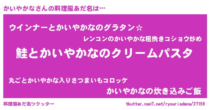 | ヘコむあだ名 | 『酢こんぶ』『かいやかな(笑)』 |