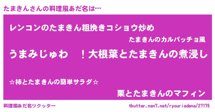 | ファンタジー風あだ名 | 『エターナルタマキンー』『ゼタマトゥ』 |