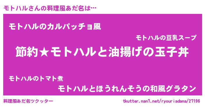| 男性向けラノベタイトル風あだ名 | 『モトハルの憂鬱』『魔弾の王とモトハル』 |
