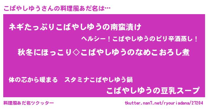 | 胡散臭い通販商品みたいなあだ名 | 『億万長者になれるブレスレット…その名も「こばやしゆう」』 |