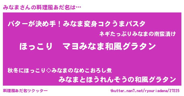 | ヘコむあだ名 | 『みなにゅー』『なまこ酢』『みなを』 |