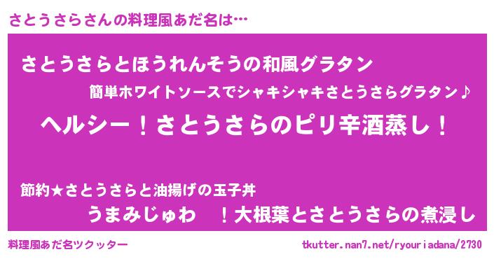 | ヒーロー風カッコイイあだ名 | 『究極戦士サトウサラ』『炎刃騎士サト』 |