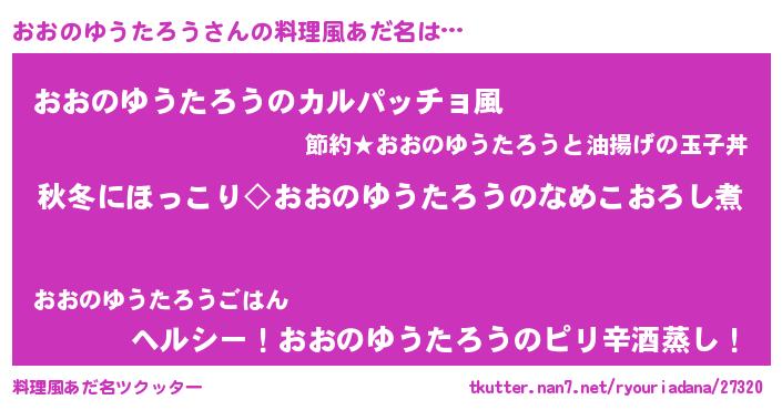 | 男性向けラノベタイトル風あだ名 | 『おおのゆうたろうに滅ぼされるだけの簡単なお仕事です』 |