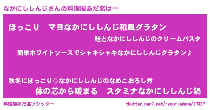 | 男性向けラノベタイトル風あだ名 | 『なかにししんじの嫁は女の子じゃないと思った?』 |
