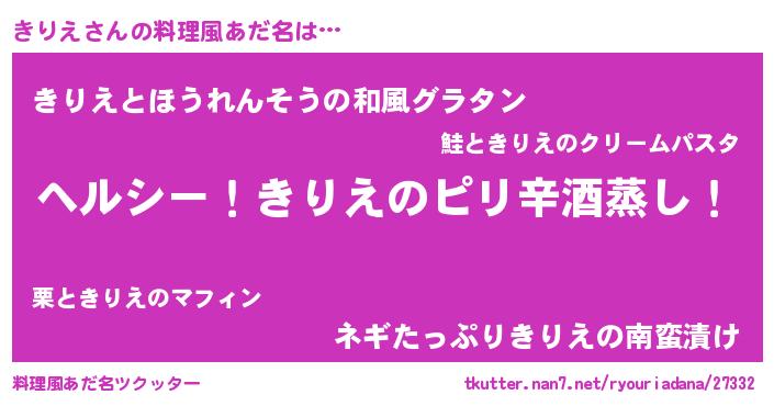 | 男性向けラノベタイトル風あだ名 | 『Re:きりえから始める異世界生活』 |